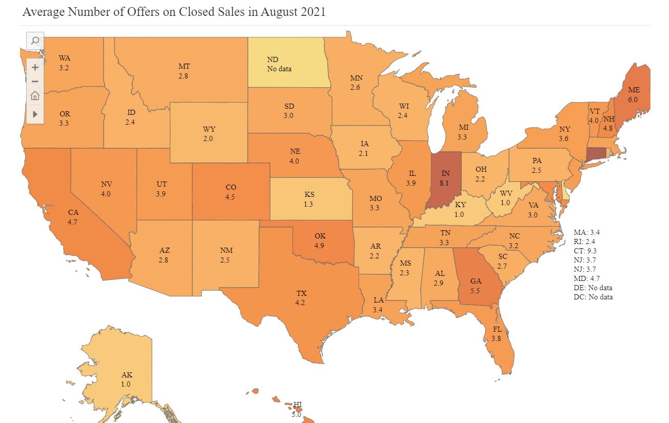 BUT, the number of offers is finally coming down. Nationally from ~5.1 offers per listing in April to 3.8 in August. Colorado is at 4.5.